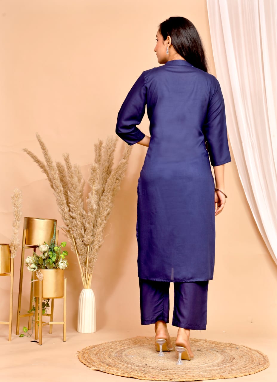 The straight-fit kurta with a chic mandarin neckline and three-quarter sleeves offers a sleek, flattering silhouette that pairs seamlessly with the matching relaxed-fit pants. Soft, breathable, and effortlessly stylish, the Blue Bird Co-Set is perfect for workdays, casual outings, or leisurely evenings where comfort meets refined fashion.