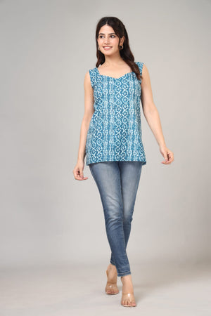 Bring a calm, everyday charm to your wardrobe with the Azure Vibe Short Kurti. Designed in soothing blue tones with a graceful all-over print, this kurti offers a fresh, relaxed look that’s easy to wear. The comfortable A-line shape allows free movement and breathability, making it ideal for casual outings, work-from-home days, or slow mornings when you want to feel comfortable yet look put together.