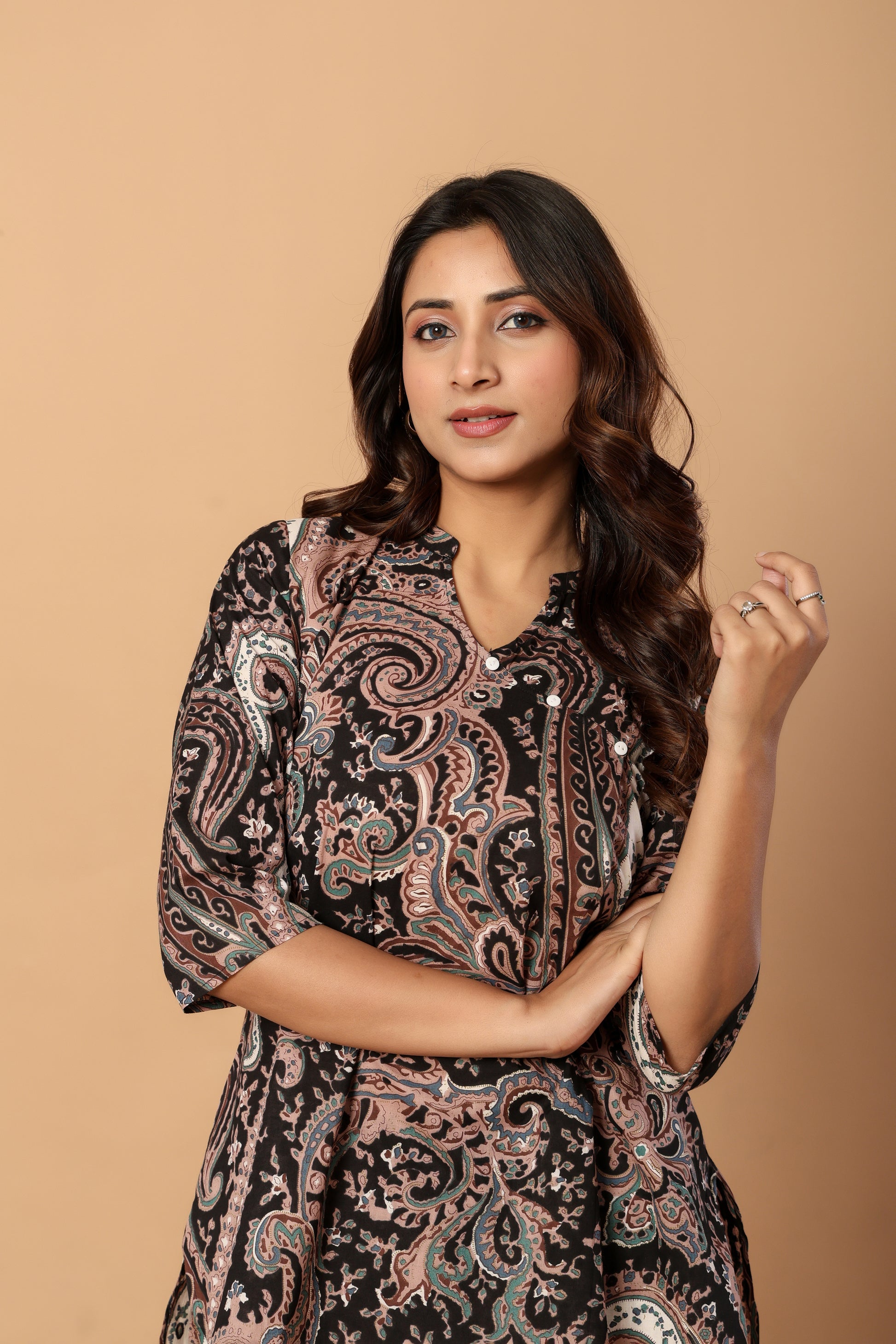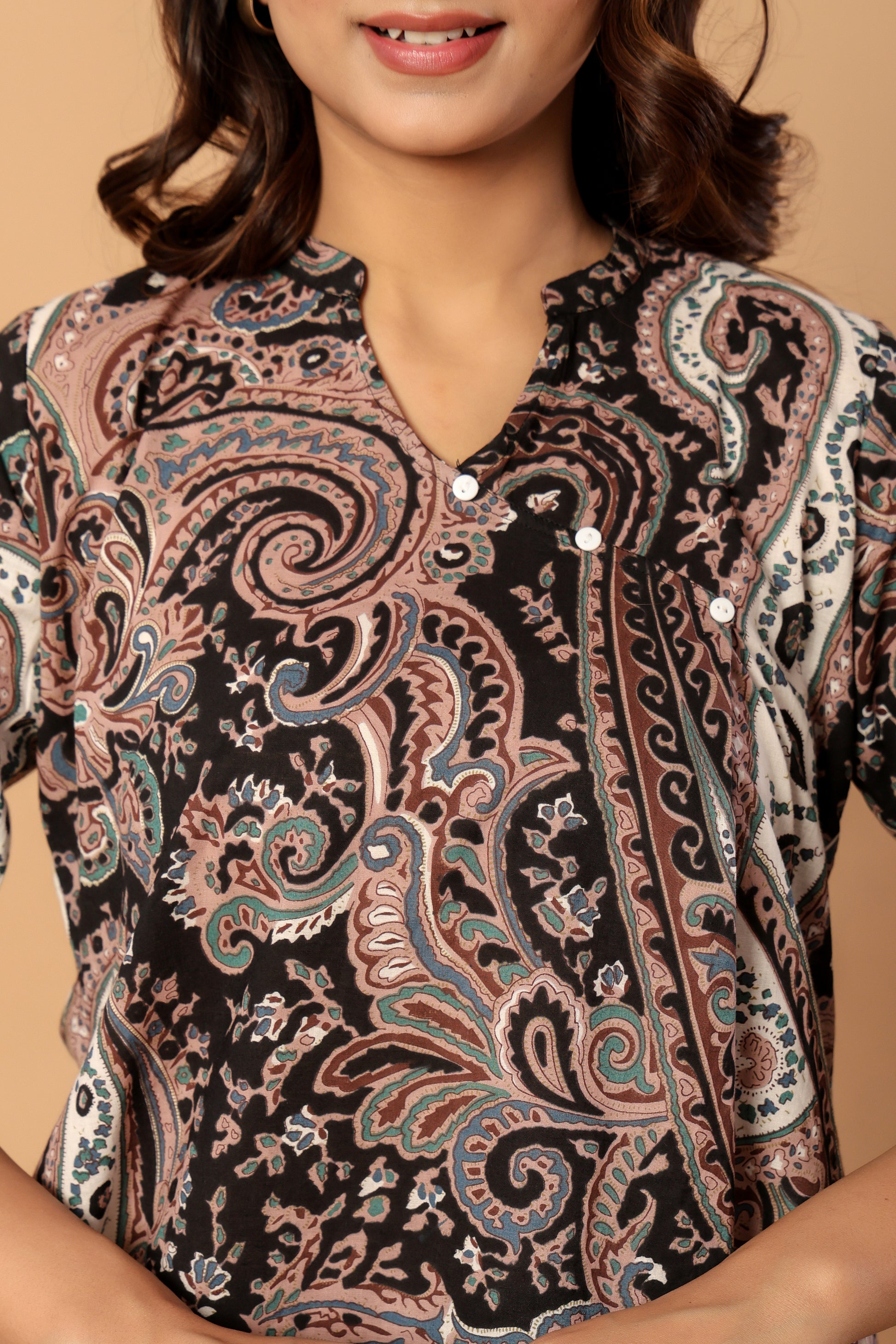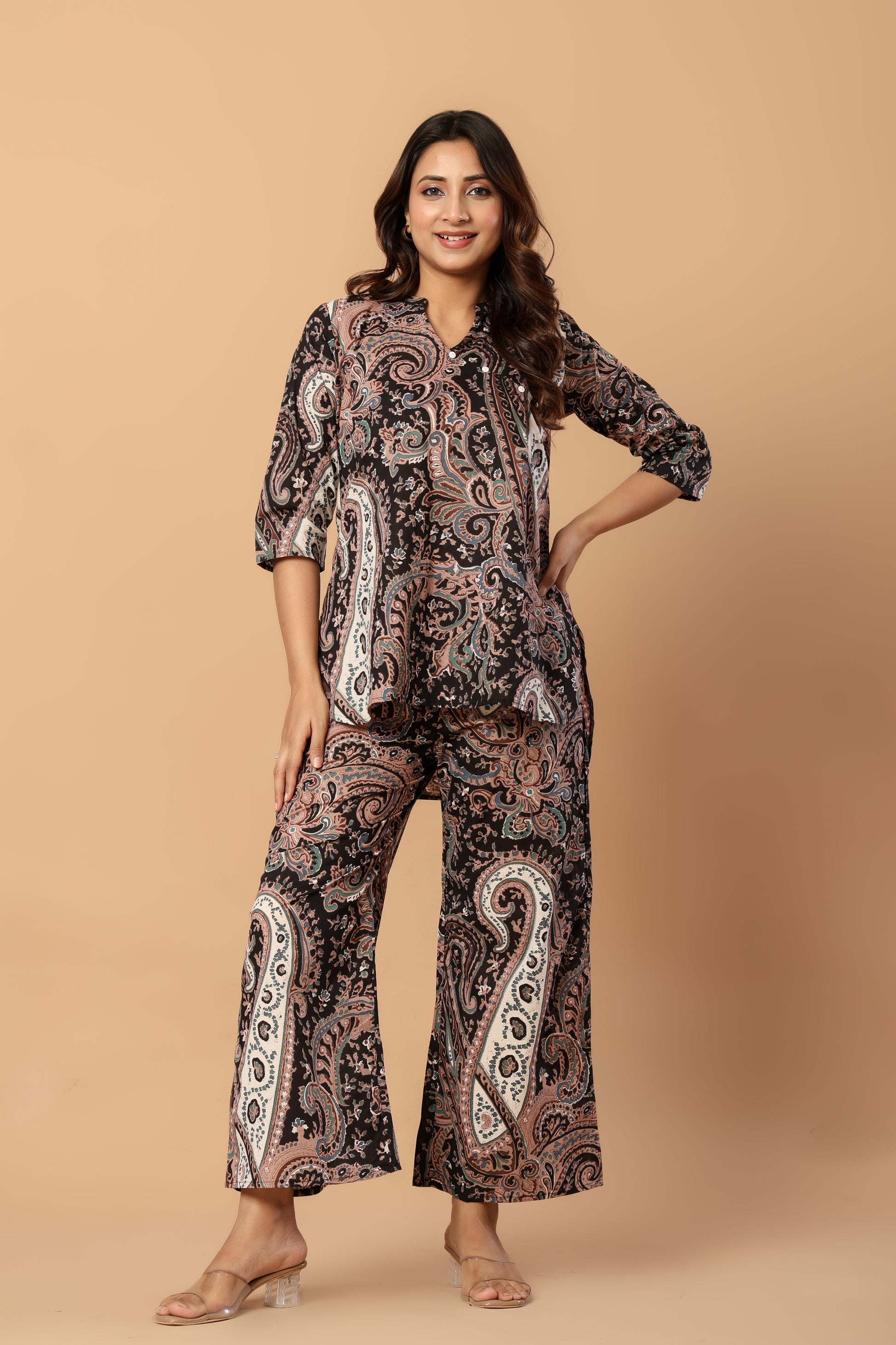 Embrace effortless sophistication with our Vintage Aura Paisley Co-ord Set—an ode to classic artistry reimagined for modern comfort. Set against a rich, earthy base and detailed with flowing paisley motifs, this ensemble blends heritage elegance with a refined contemporary appeal.
