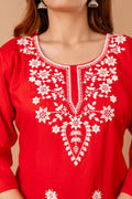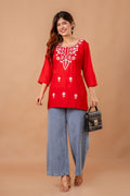 Red Blossom Embroidery Top