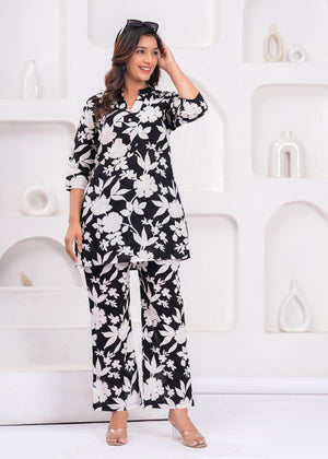 Step into timeless elegance with our Classic Noir Co-ord Set—where deep black tones meet striking monochrome floral artistry. Designed for women who appreciate understated luxury, this co-ord celebrates refined prints, clean silhouettes, and effortless sophistication.